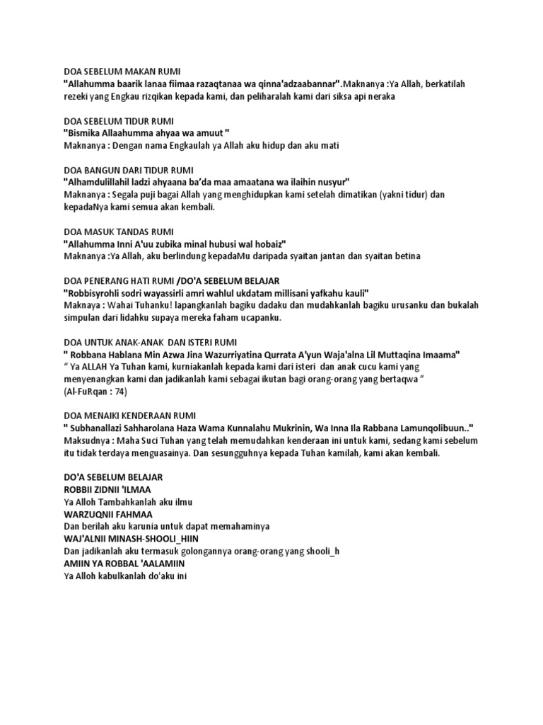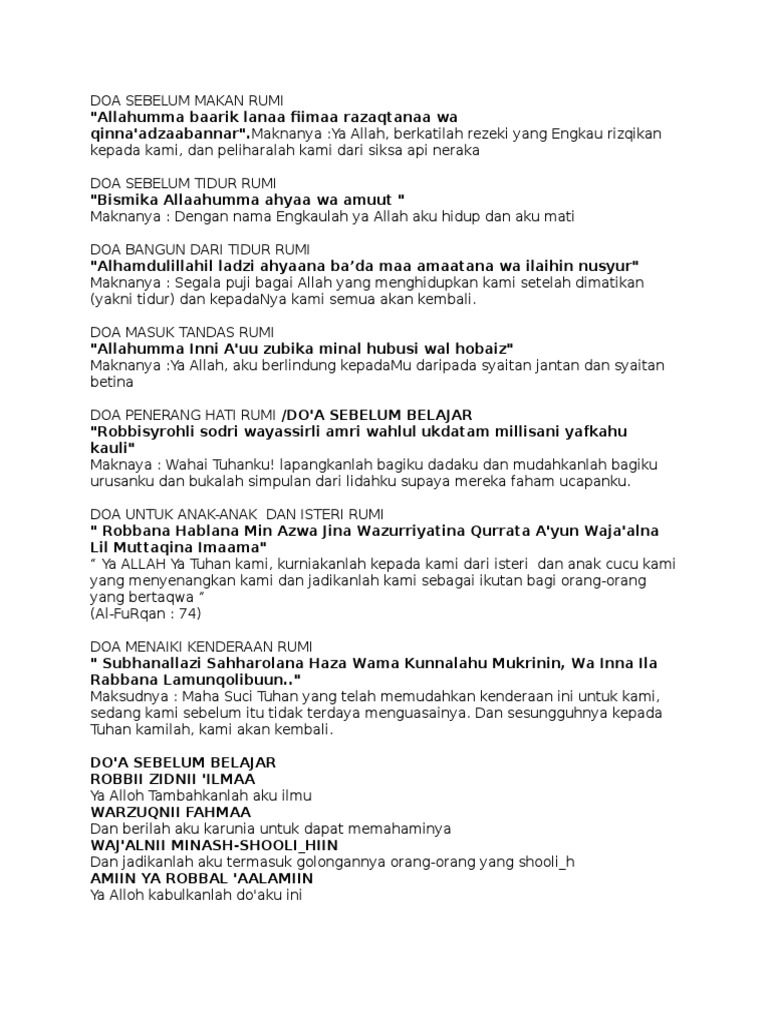 Himpunan doa zikir dgn bacaan rumi. Waauzubika minal ajzi wal kasal waauzubika minal jubni wal bukhli wa auzubika min ghalabatid daini waqahrir rijaal. Doa penerang hati rumi dan.