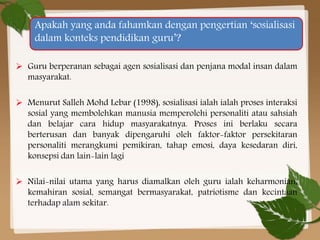 Pula menyifatkan guru sebagai agen sosialisasi dapat menanam nilai sosial dalam diri pelajar seperti demokrasi persamaan toleransi kefahaman budaya hormat-menghormati dan.